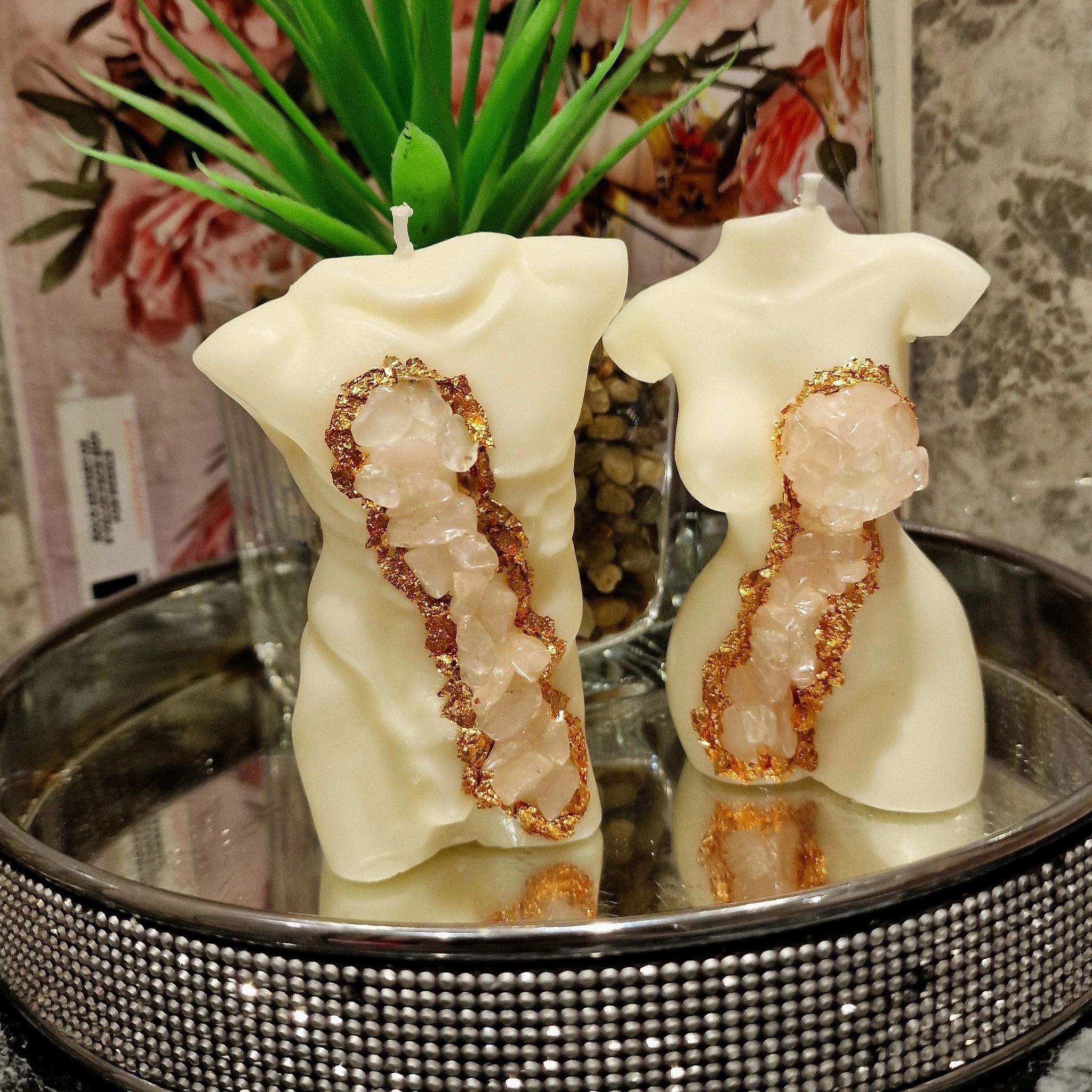 This beautiful torso has now been hand decorated with rose quartz crystals and rose gold leaf to make her even more visually stunning. Each Crystal torso is just £8